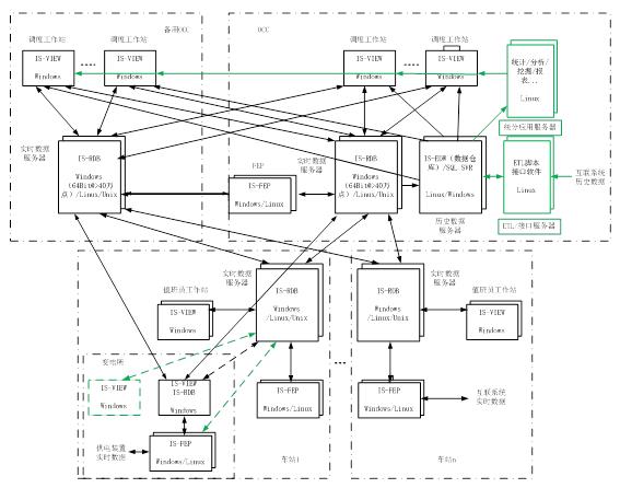 图6 IS-SCADA应用于城市轨道交通综合监控系统的软件部署架构与数据流组织